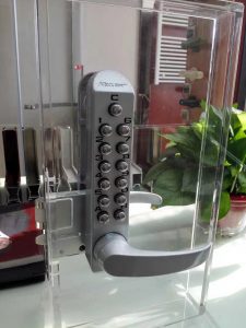 KEYLEX機(jī)械密碼鎖為全機(jī)械式,不用電池和電源,也不用布線,安裝簡單,可以用12個(gè)按鈕組合記憶密碼,任意設(shè)置,按鈕是特殊加工的不銹鋼按鈕,不會殘留下使用的痕跡。機(jī)械密碼鎖防盜,美觀,入戶門首選!